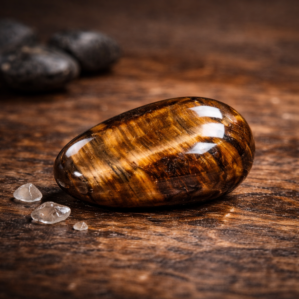 Olho de TigreO que é: pedra com brilho “acetinado” e reflexos dourados/caramelo (efeito óptico conhecido como chatoyance).