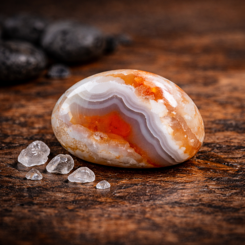 ÁgataO que é: família de pedras com variações de cor e faixas naturais (bandas), cada peça é única.